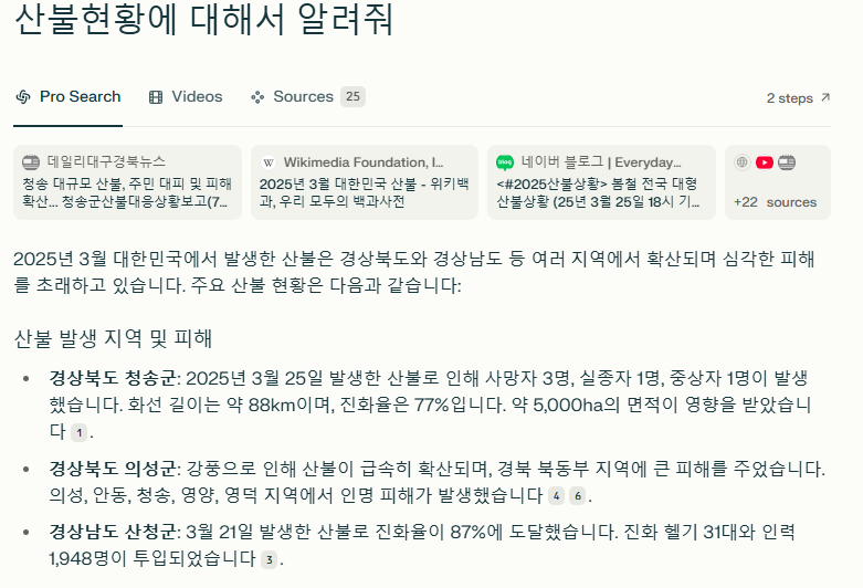 또 한 가지 인상 깊었던 건, 한글 질문도 제법 잘 이해한다는 점이다. 물론 영어가 중심이긴 하지만, 요즘은 한국어 자료도 꽤 많이 연결돼서 국내 뉴스, 블로그 요약까지 되는 편이다.